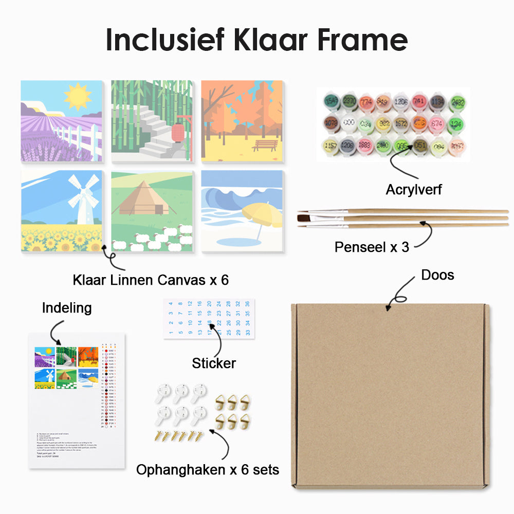 Bloemenvelden en Graslanden 6 Stuks Mini Schilderen op Nummers