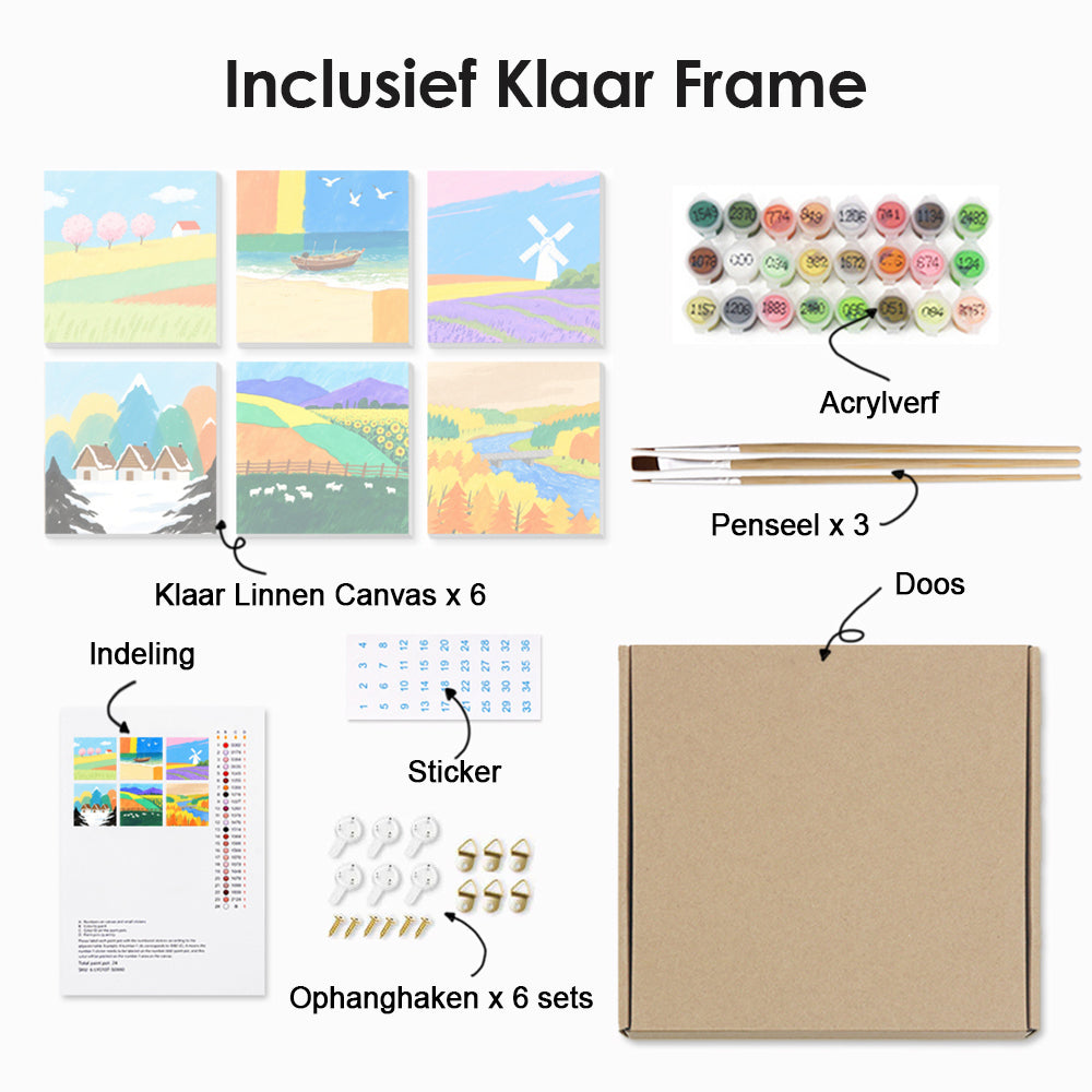 Kleurrijke Velden door de Vier Seizoenen 6 Stuks Mini Schilderen op Nummers