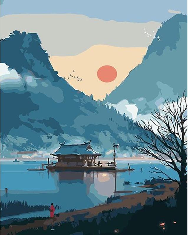 Inktschilderij Bergen en Zee Schilderen op Nummers