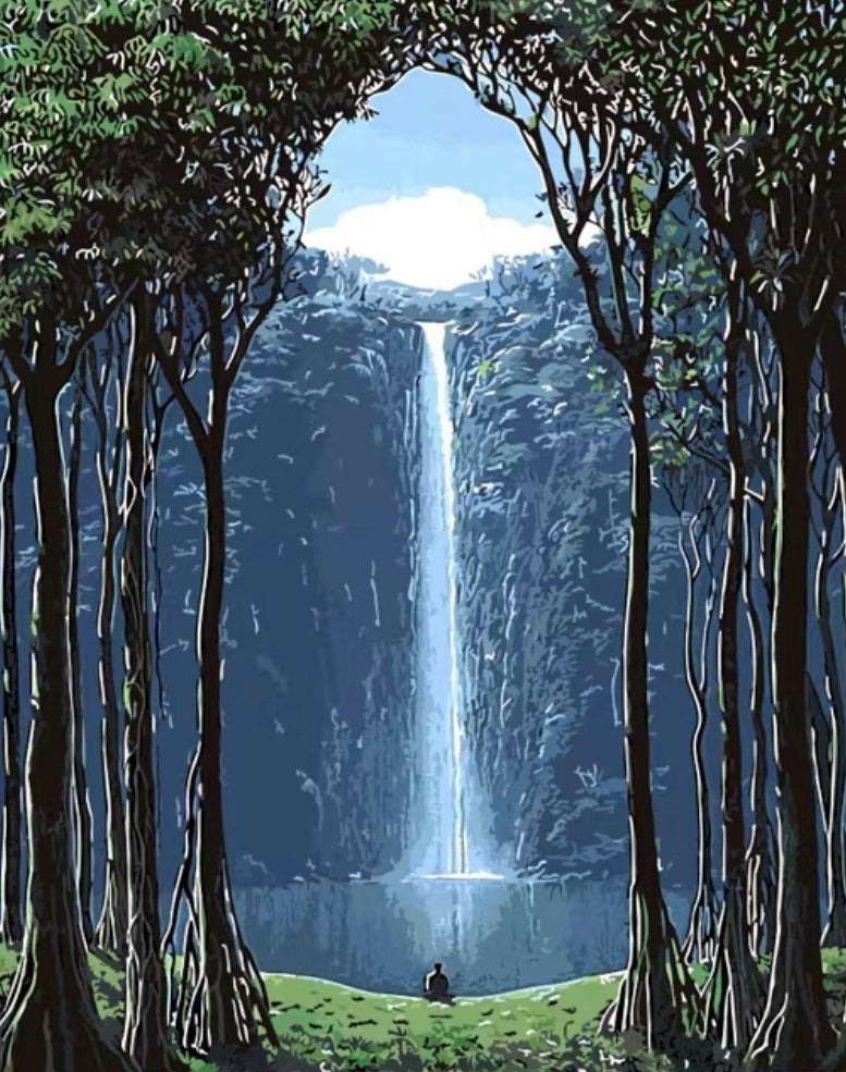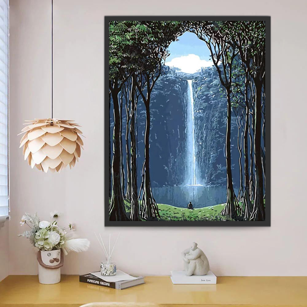 Indrukwekkende Watervallen en de Mens in het Bos Schilderen op Nummers
