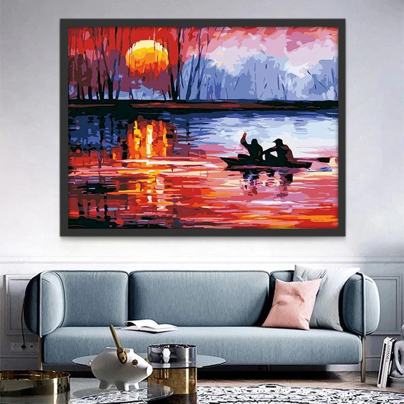 Twee Mannen op een Boot bij Zonsondergang Schilderen op Nummers