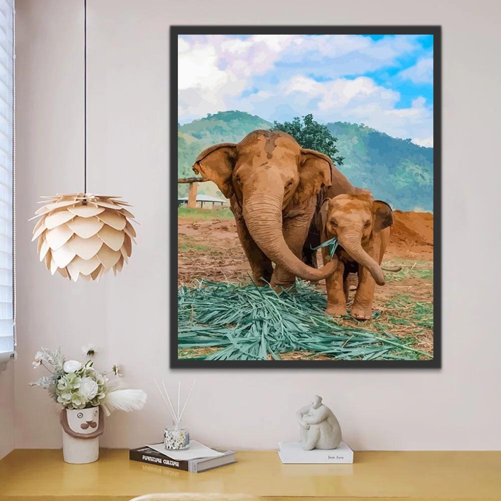 Moeder en Kind Olifanten onderaan de Heuvel Schilderen op Nummers
