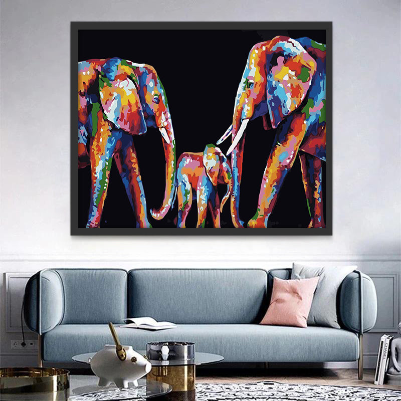 Kleurrijke Olifantenfamilie Schilderen op Nummers