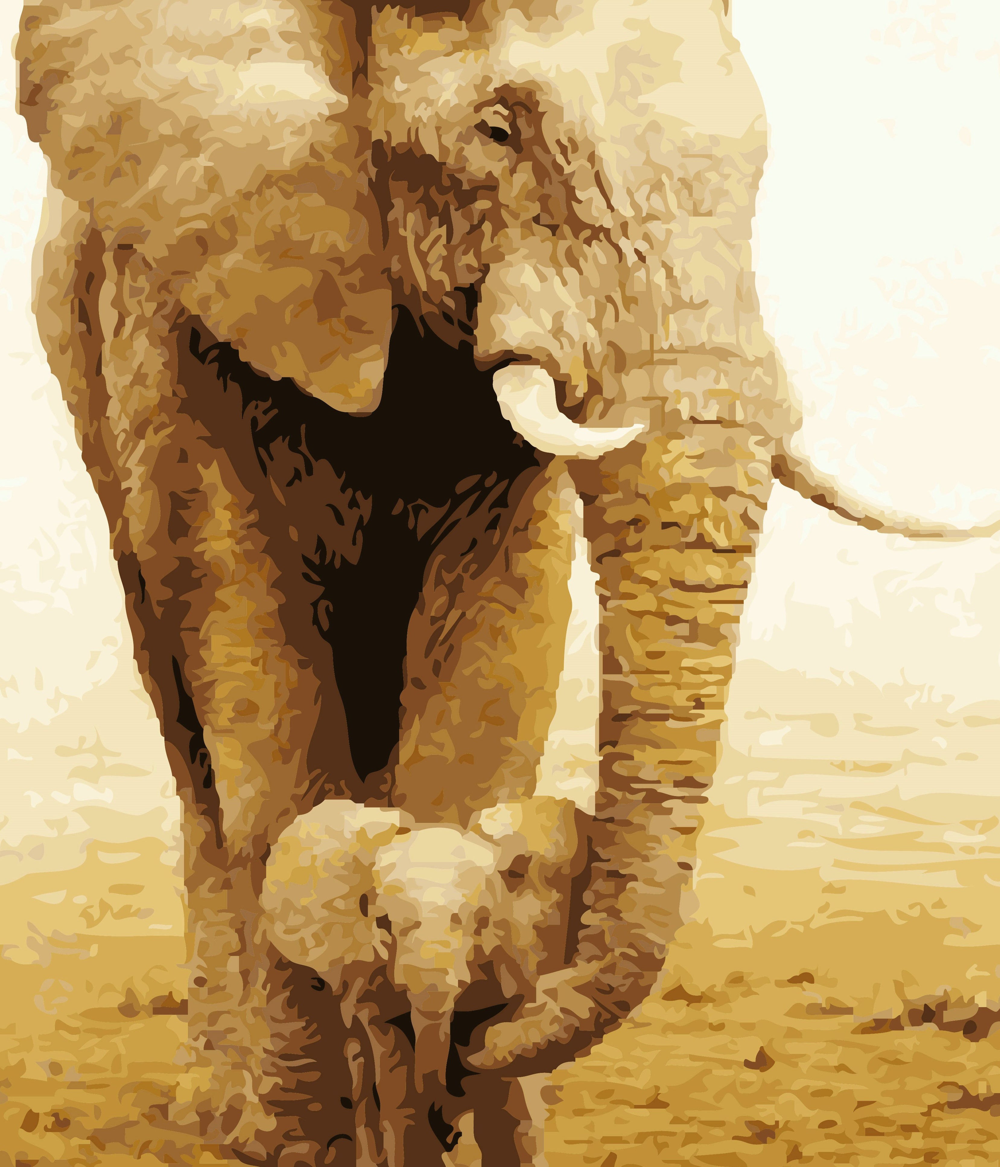 Olifant die Babyolifant Beschermen Schilderen op Nummers