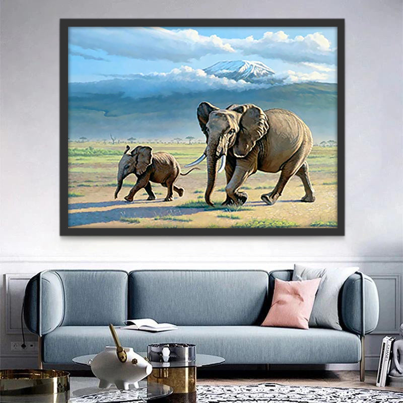Moeder en Baby Olifant Lopen in het Grasland Schilderen op Nummers