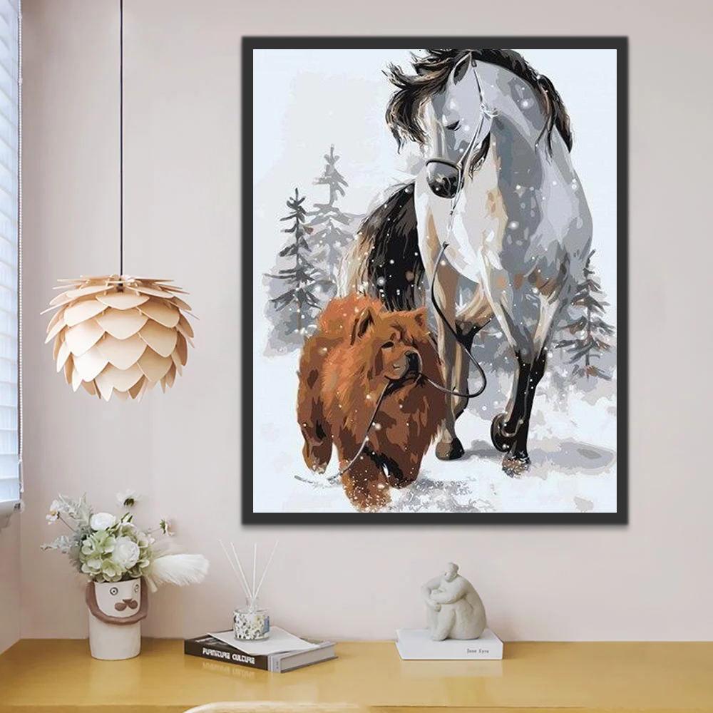 Hond en Paard in de Sneeuw Schilderen op Nummers