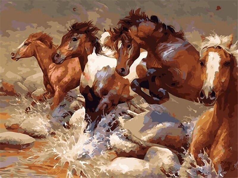 Een Kudde Bruine Paarden Schilderen op Nummers