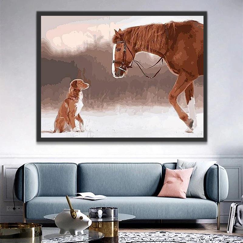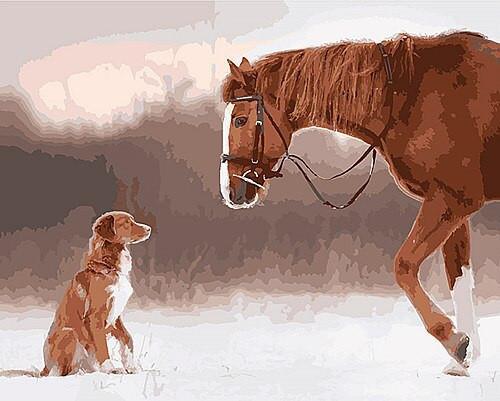 Paard en Hond in de Sneeuw Schilderen op Nummers