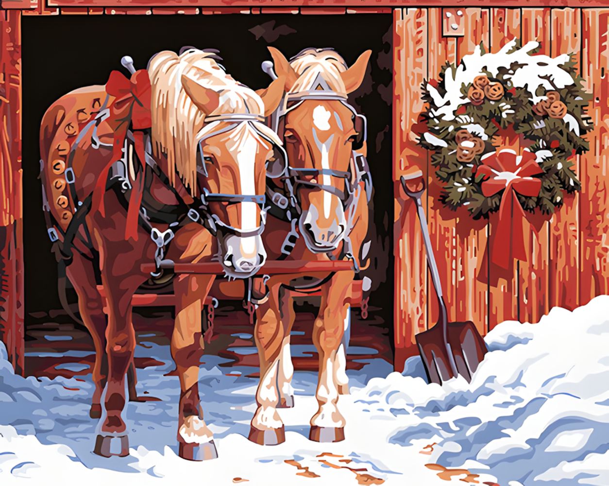 Een Paar Paarden in de Sneeuw Schilderen op Nummers