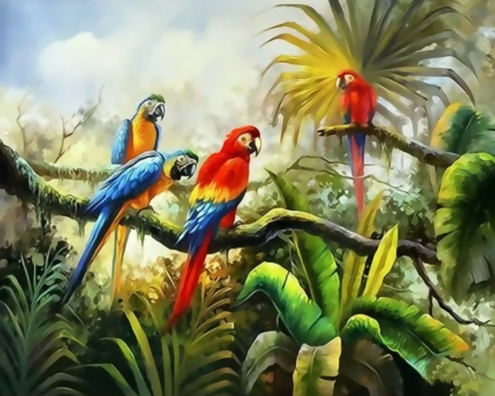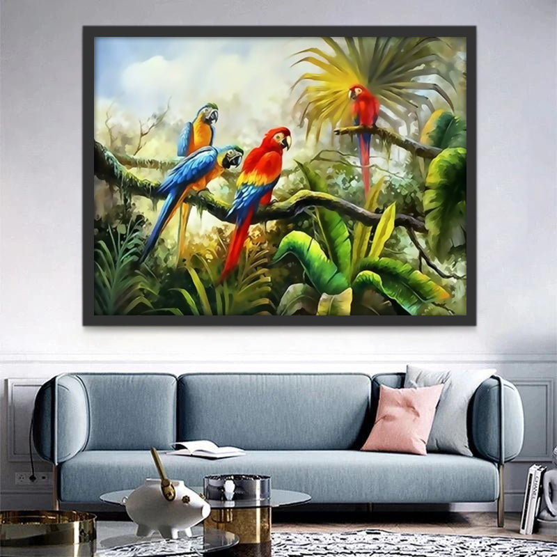 Vier Papegaaien Schilderen op Nummers