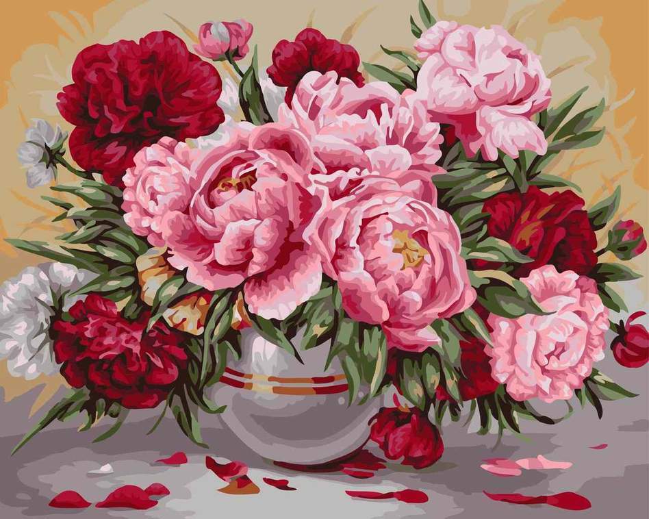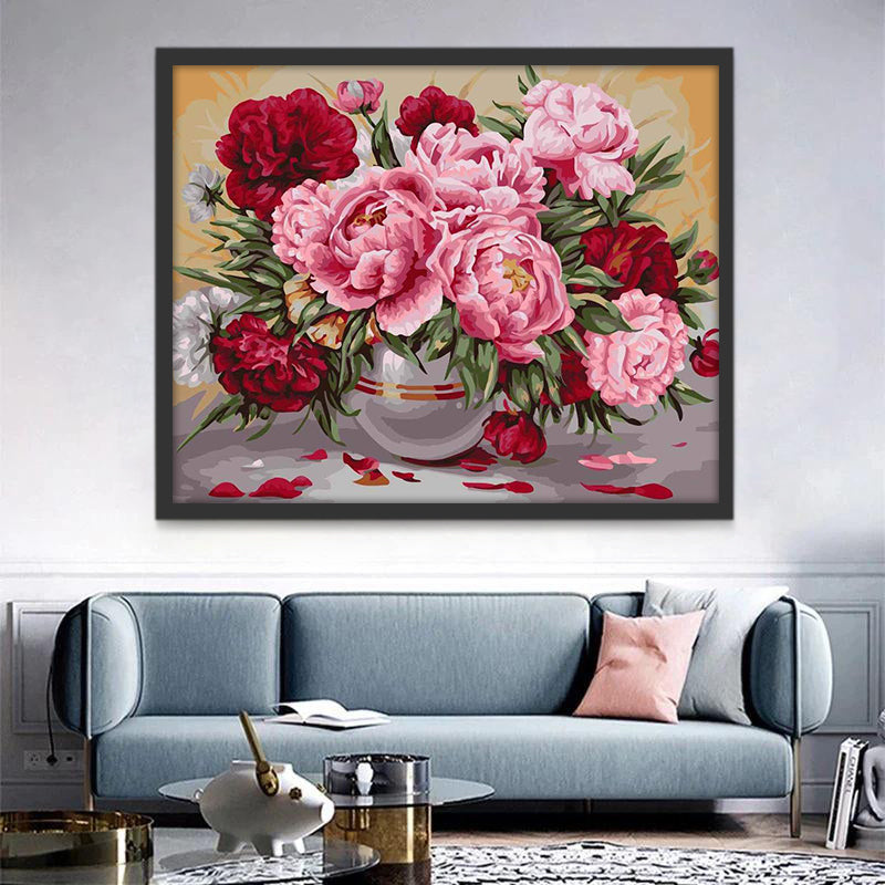 Rode en Roze Bloeiende Pioenen Schilderen op Nummers