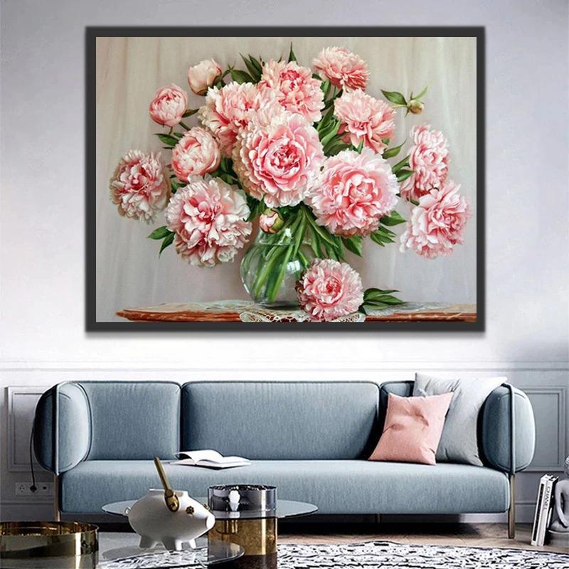 Roze Pioenrozen voor een Vensterbank Schilderen op Nummers