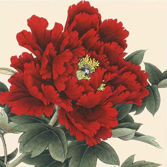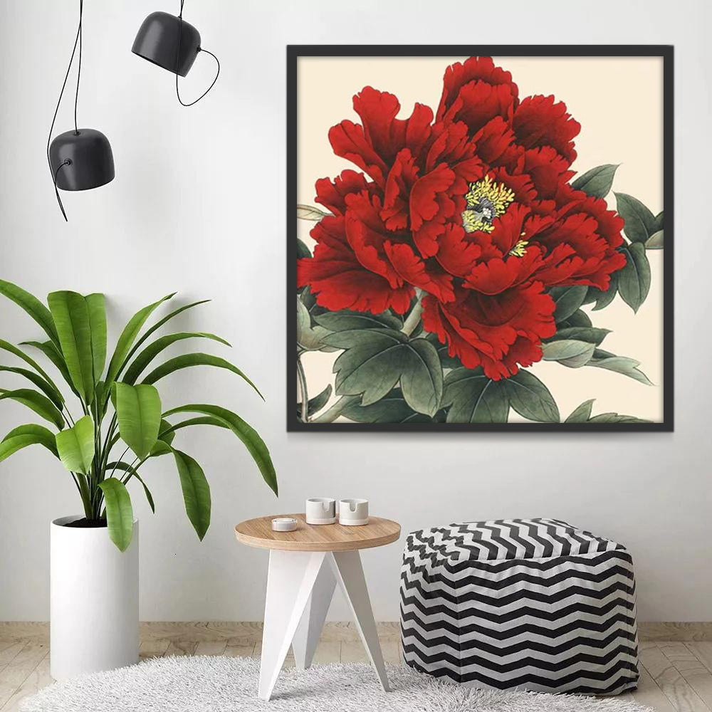 Rode Pioenroos in Chinese Penseelschilderkunst Schilderen op Nummers