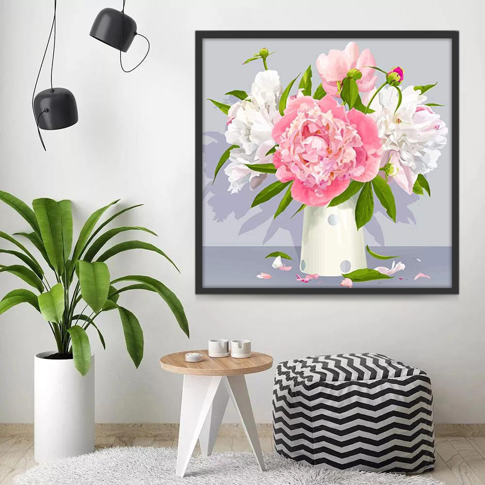 Cartoon Roze en Witte Pioenrozen Schilderen op Nummers