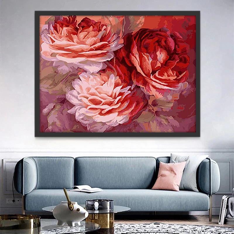 Grote roze en rode pioenrozen Schilderen op Nummers