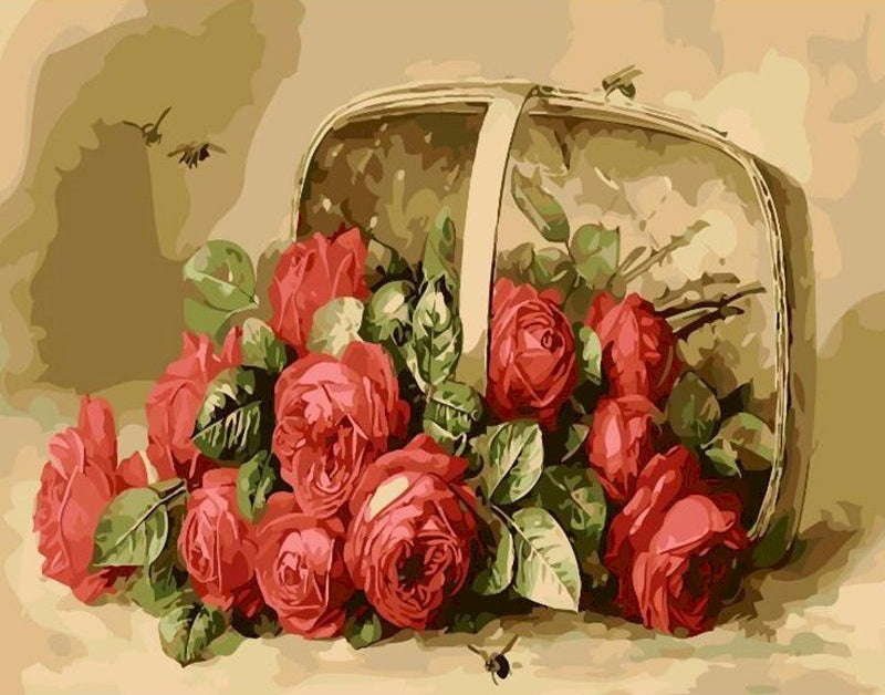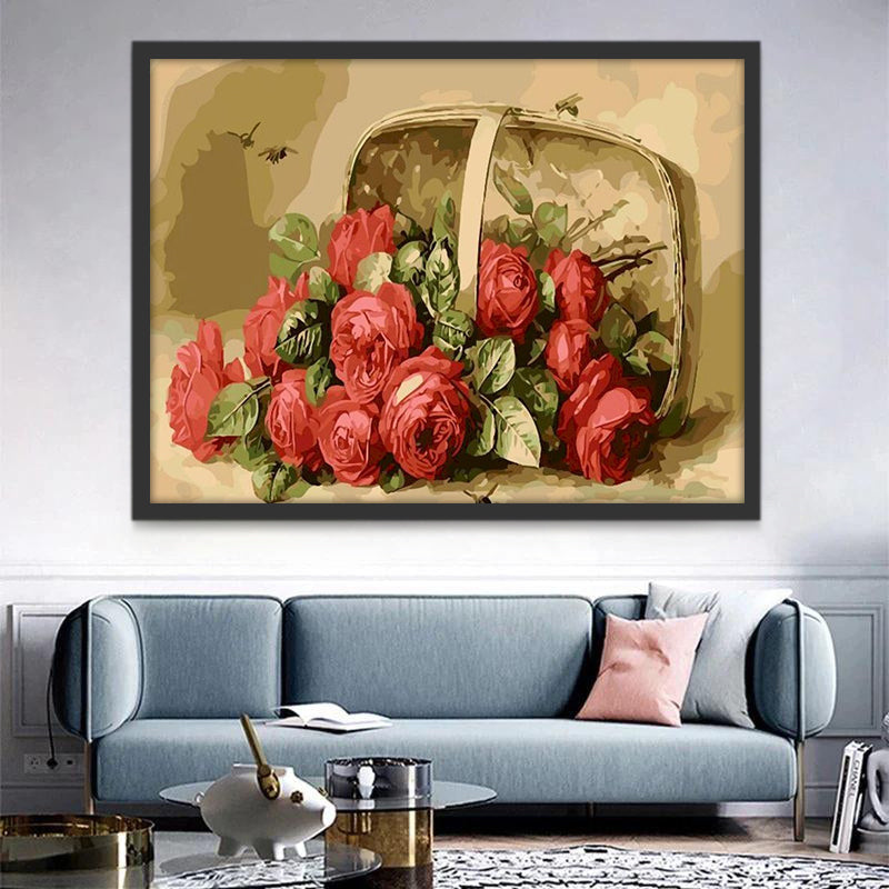 Gevallen Mand en Rode Rozen Schilderen op Nummers