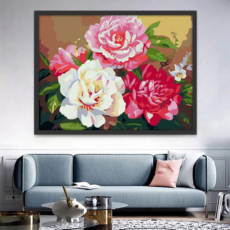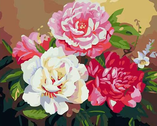Cartoon Kleurrijke Pioenrozen Schilderen op Nummers