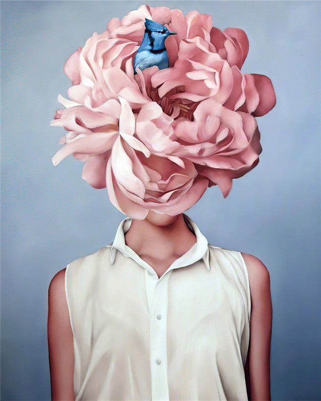 Blauwe Vlinder Roze Bloem en Vrouw Schilderen op Nummers