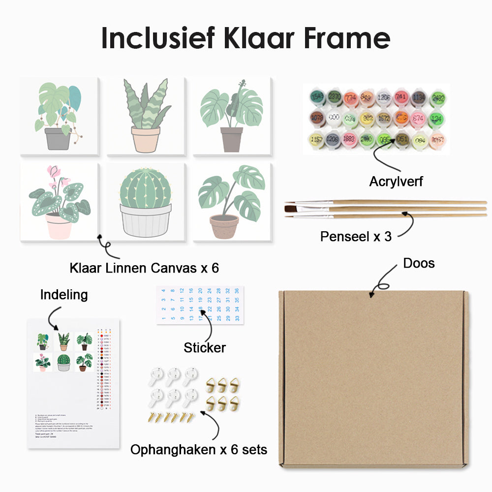 Cactus en Groene Kamerplanten 6 Stuks Mini Schilderen op Nummers