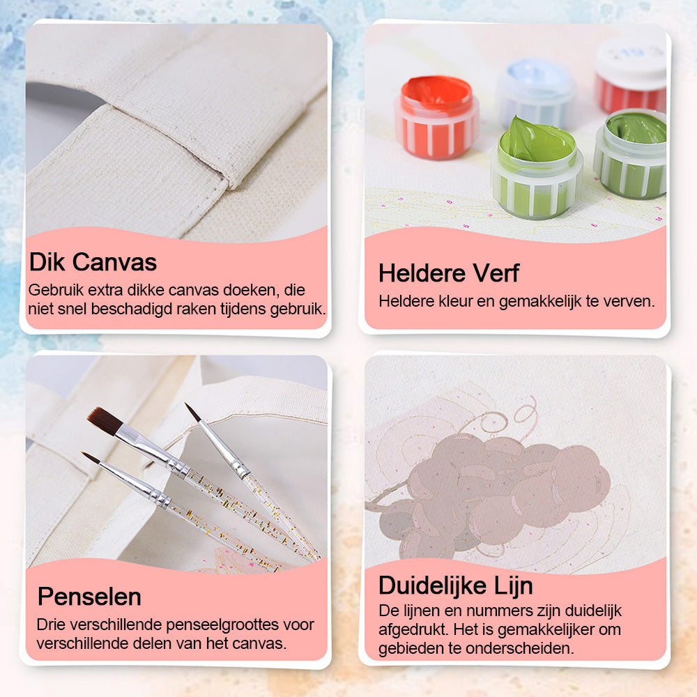 Gemakkelijk te schilderen - De set van Schilderen op nummers is gemakkelijk te gebruiken. Elk deel van het canvasdoek is genummerd en komt overeen met een kleur. Volg de instructies, schilder op nummer en maak de afbeelding af.