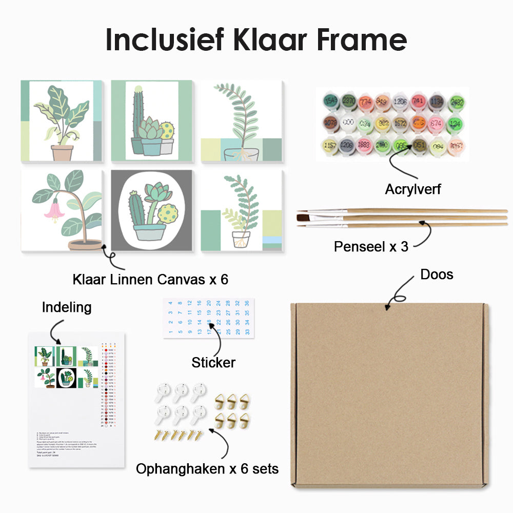 Eenvoudige Groene Kamerplanten 6 Stuks Mini Schilderen op Nummers