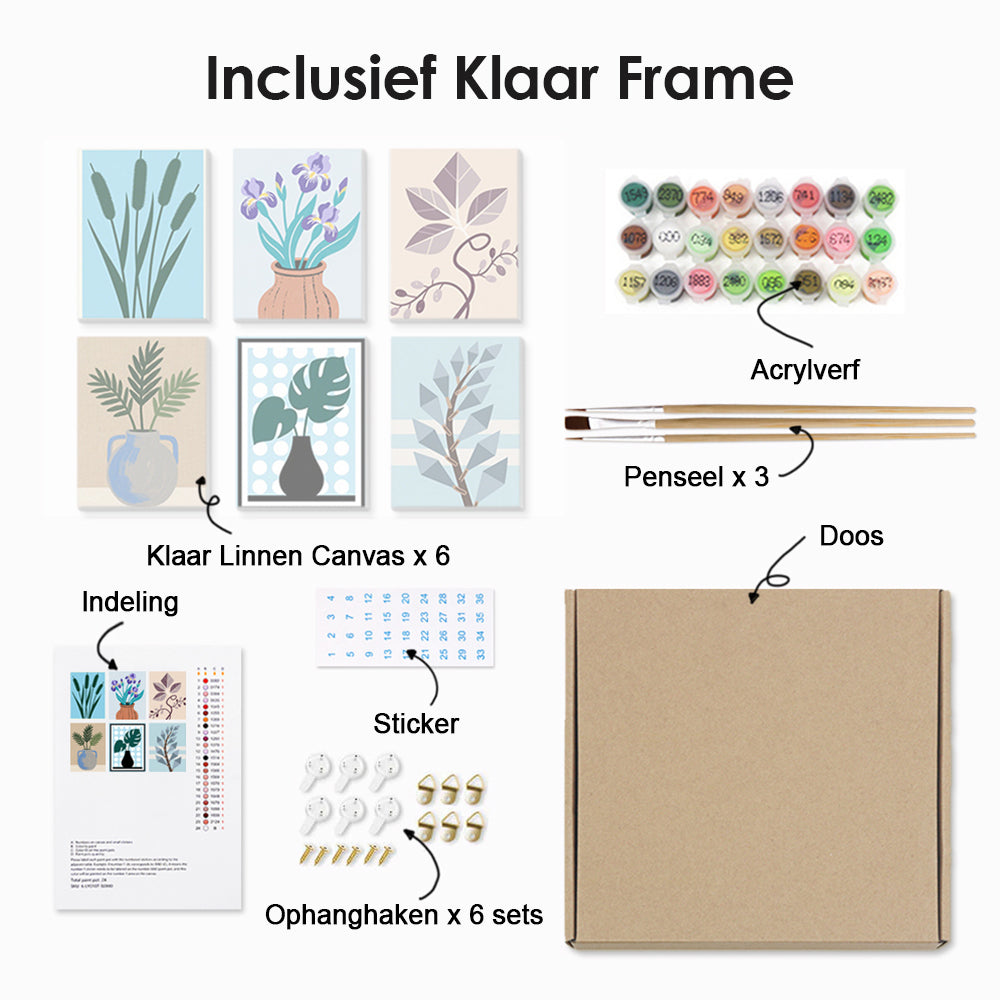 Iris en Monstera Bladeren in Vazen 6 Stuks Mini Schilderen op Nummers