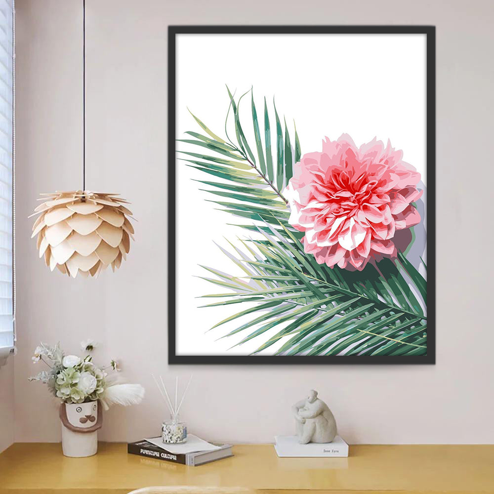 Een Roze Bloem en Twee Bladeren Schilderen op Nummers