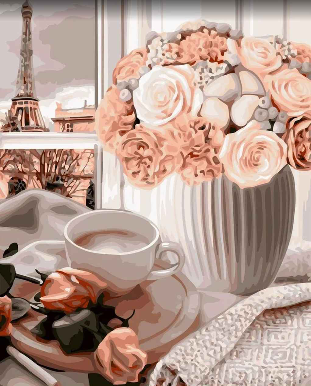 Kamer met bloemen en de toren van Parijs Schilderen op Nummers