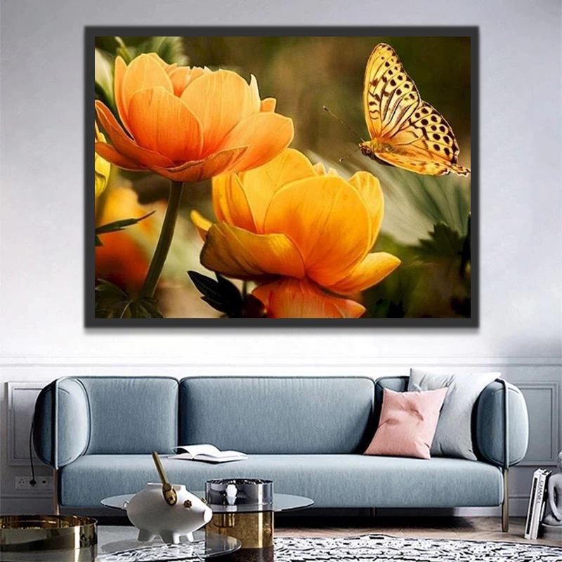 Gele vlinder en bloem Schilderen op Nummers