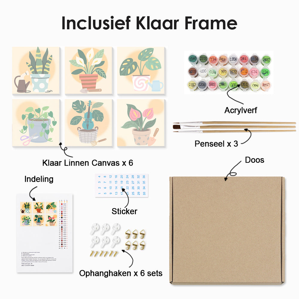Pot Tropische Planten 6 Stuks Mini Schilderen op Nummers