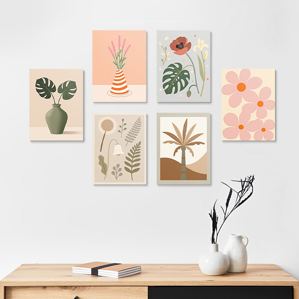 Roze Bloemen en Herfstbladeren 6 Stuks Mini Schilderen op Nummers