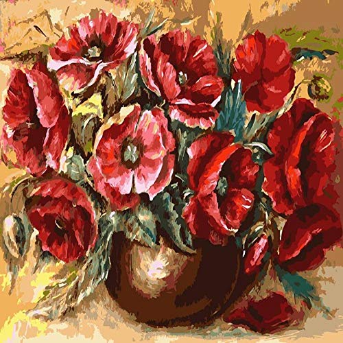 Olieverfschilderij Stijl Een Pot met Klaprozen Schilderen op Nummers