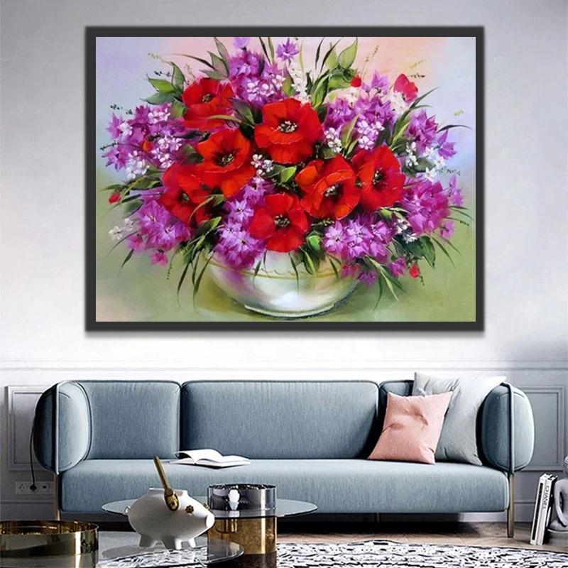 Klaprozen en Paarse Bloemen Schilderen op Nummers