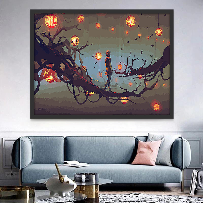 Mystieke Sfeer met Lantaarns en Boom Schilderen op Nummers