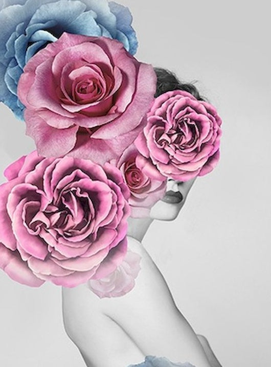 Vrouw met Blauwe en Roze Rozen Schilderen op Nummers