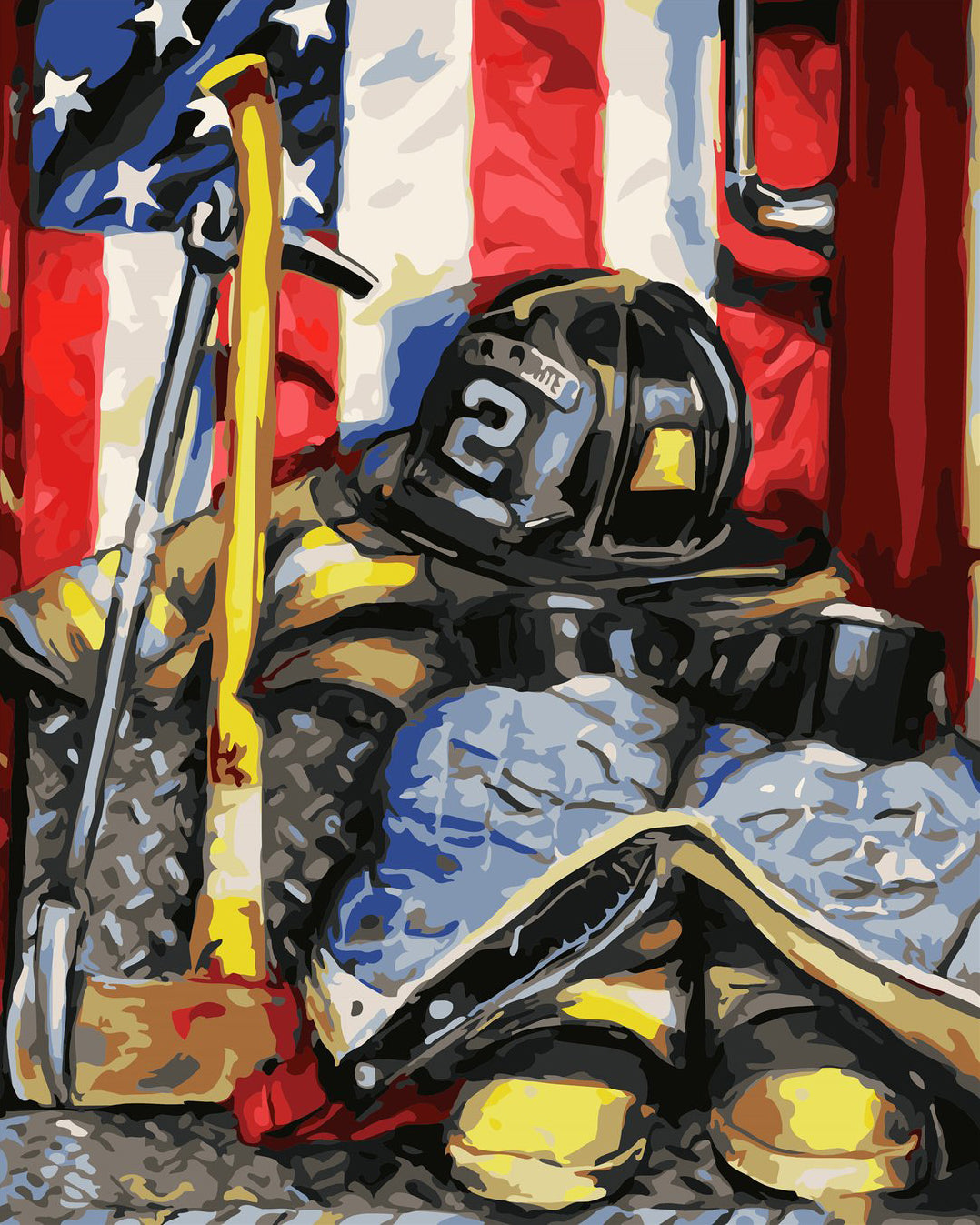 Brandweeruitrusting voor Amerikaanse Vlag Schilderen op Nummers