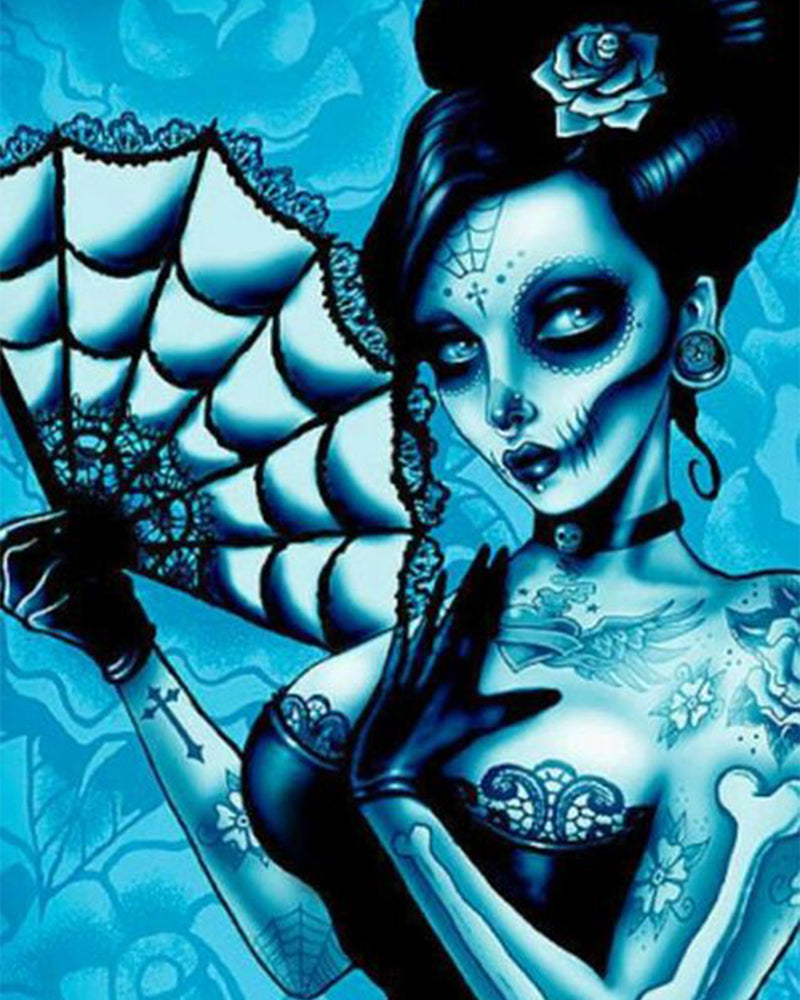 Skeletvrouw in Blauwe Tinten Schilderen op Nummers