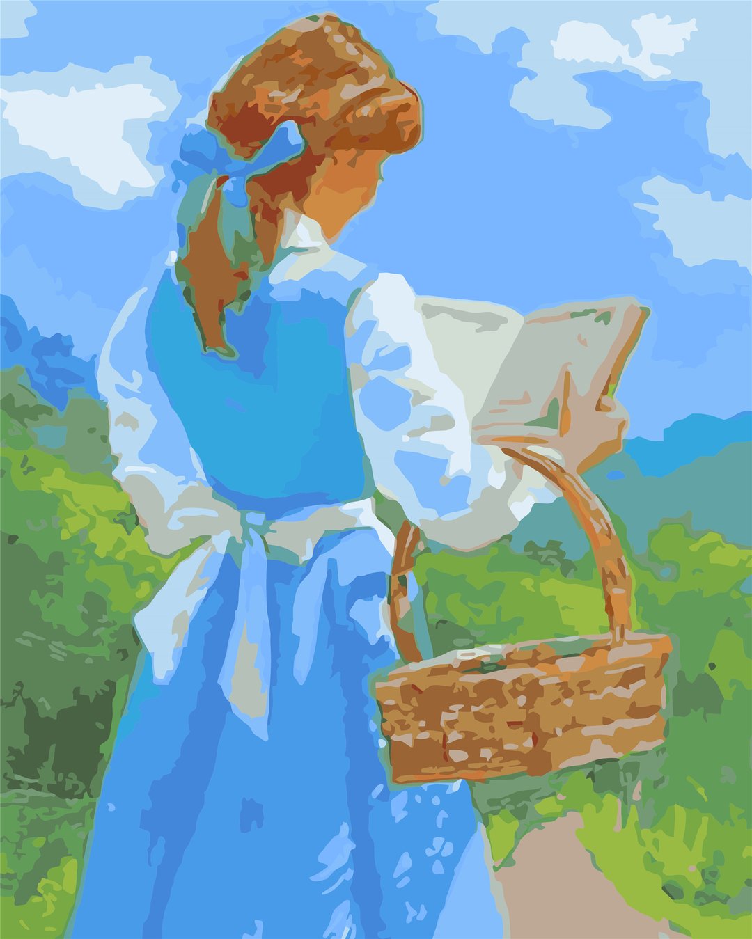 Meisje in Blauwe Outfit Leest in de Vrije Natuur Schilderen op Nummers
