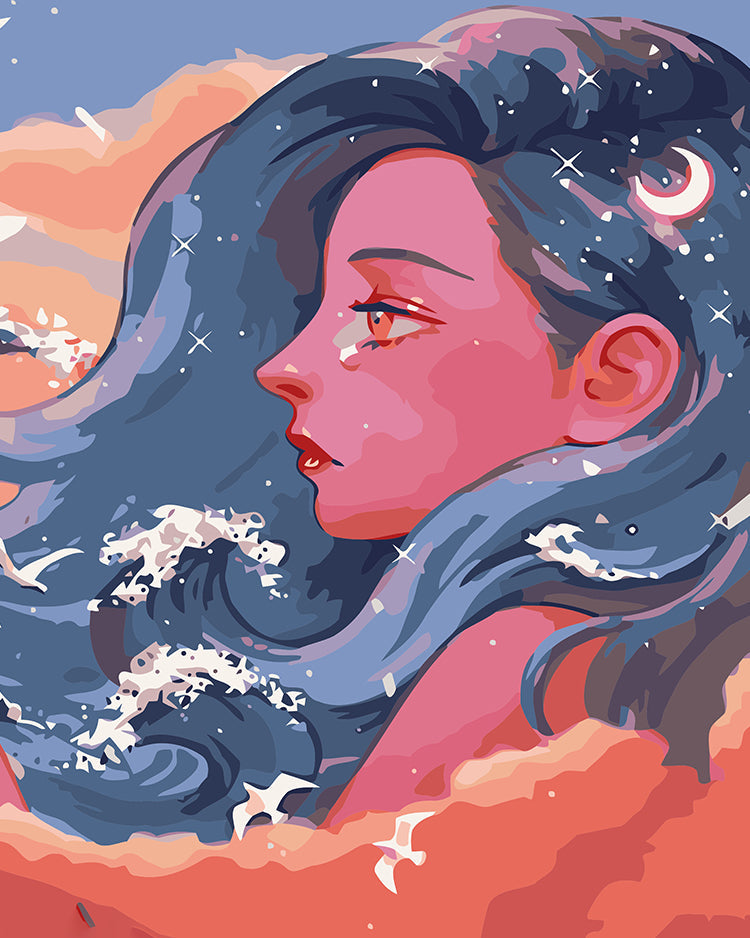 Vrouw in Wolkenfantasië Schilderen op Nummers