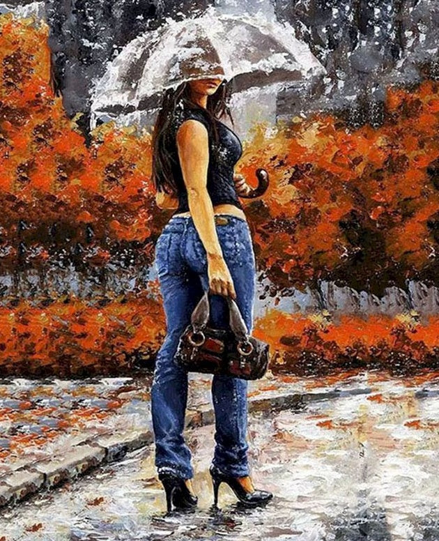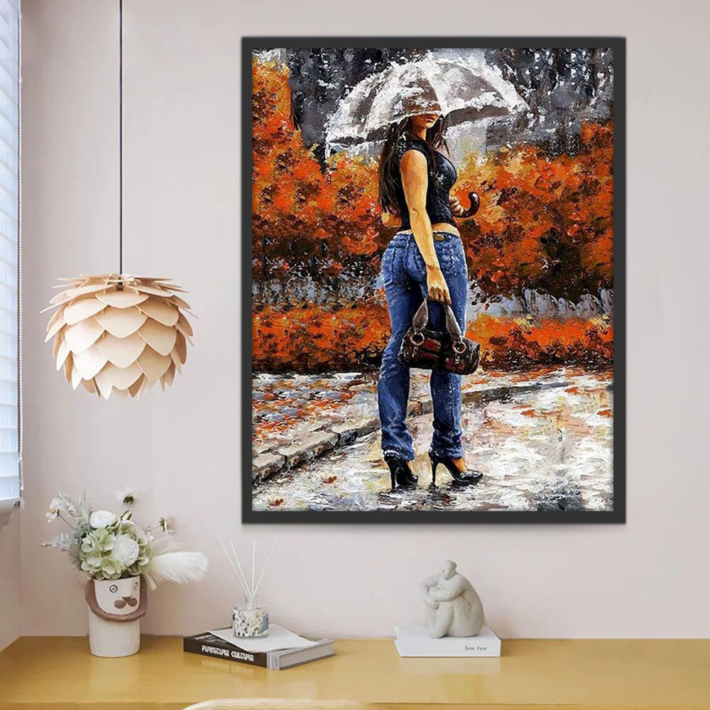 Een Modieuze Verschijning in de Natte Straat Schilderen op Nummers