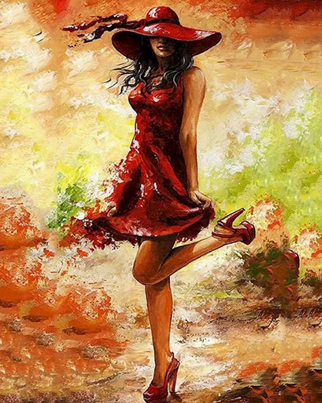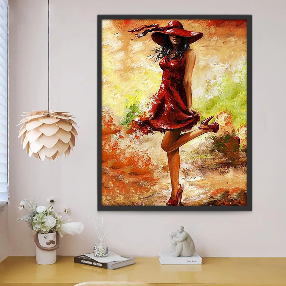 Een Vrouw met Speels Opgetrokken Benen Schilderen op Nummers