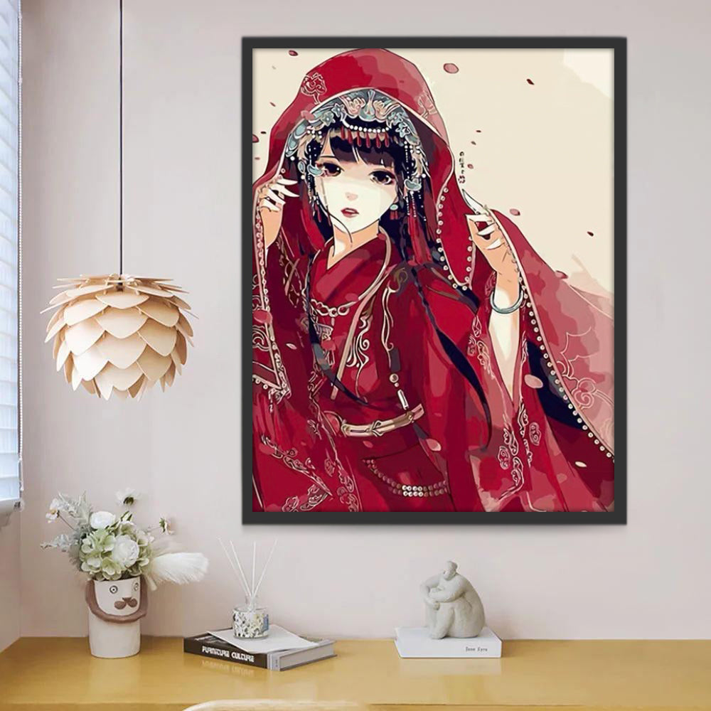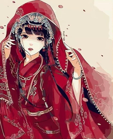 Rode Klassieke Schoonheid met Juweelversierde Kap Schilderen op Nummers