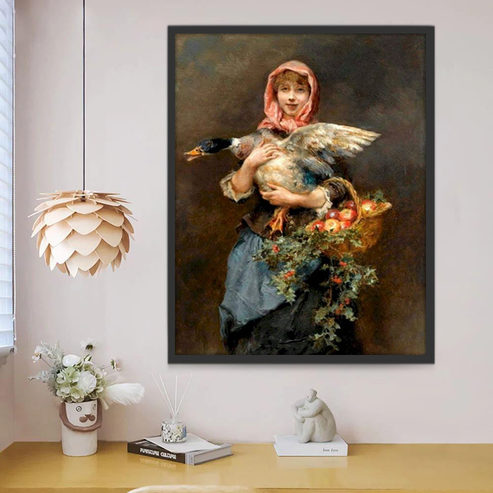 Plattelandsmeisje met Oogst en Tamme Vogel Schilderen op Nummers
