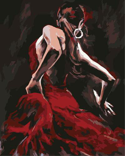 De Silhouet van een Danseres in Rood Schilderen op Nummers