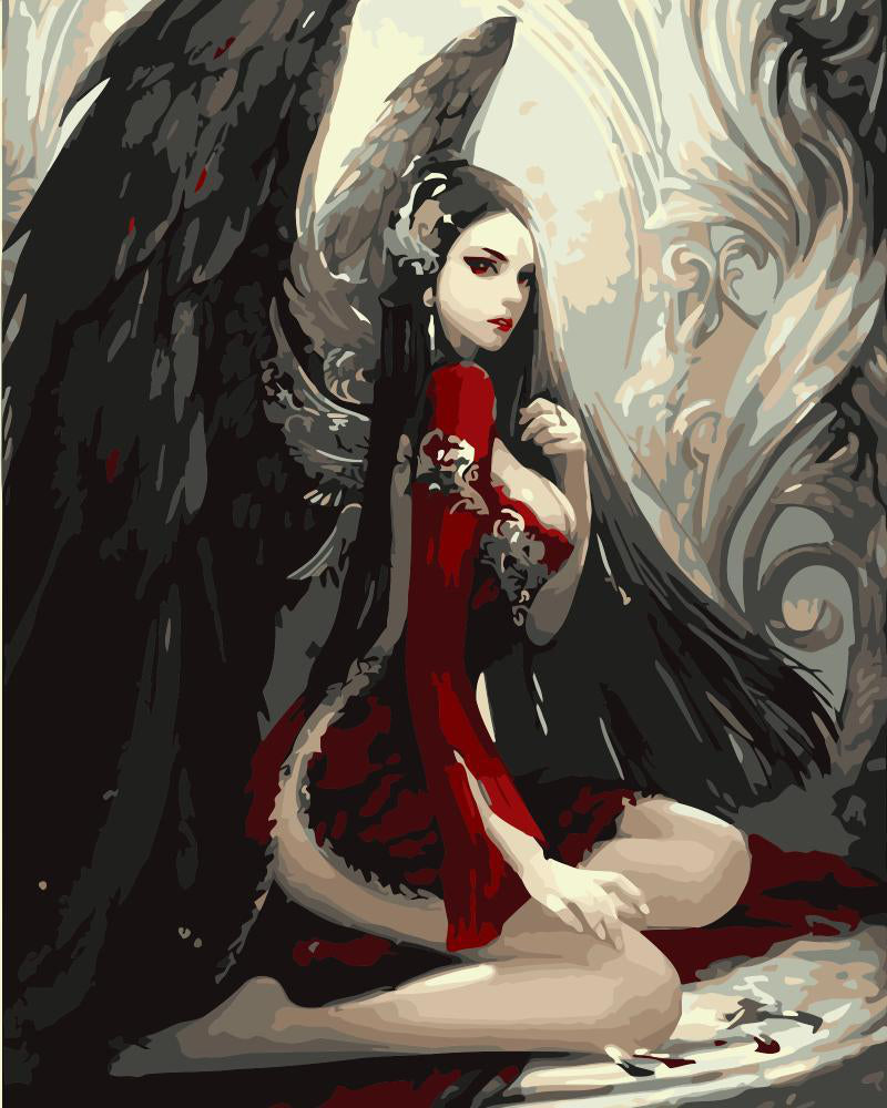 Rode Jurk en Zwarte Vleugels Schilderen op Nummers
