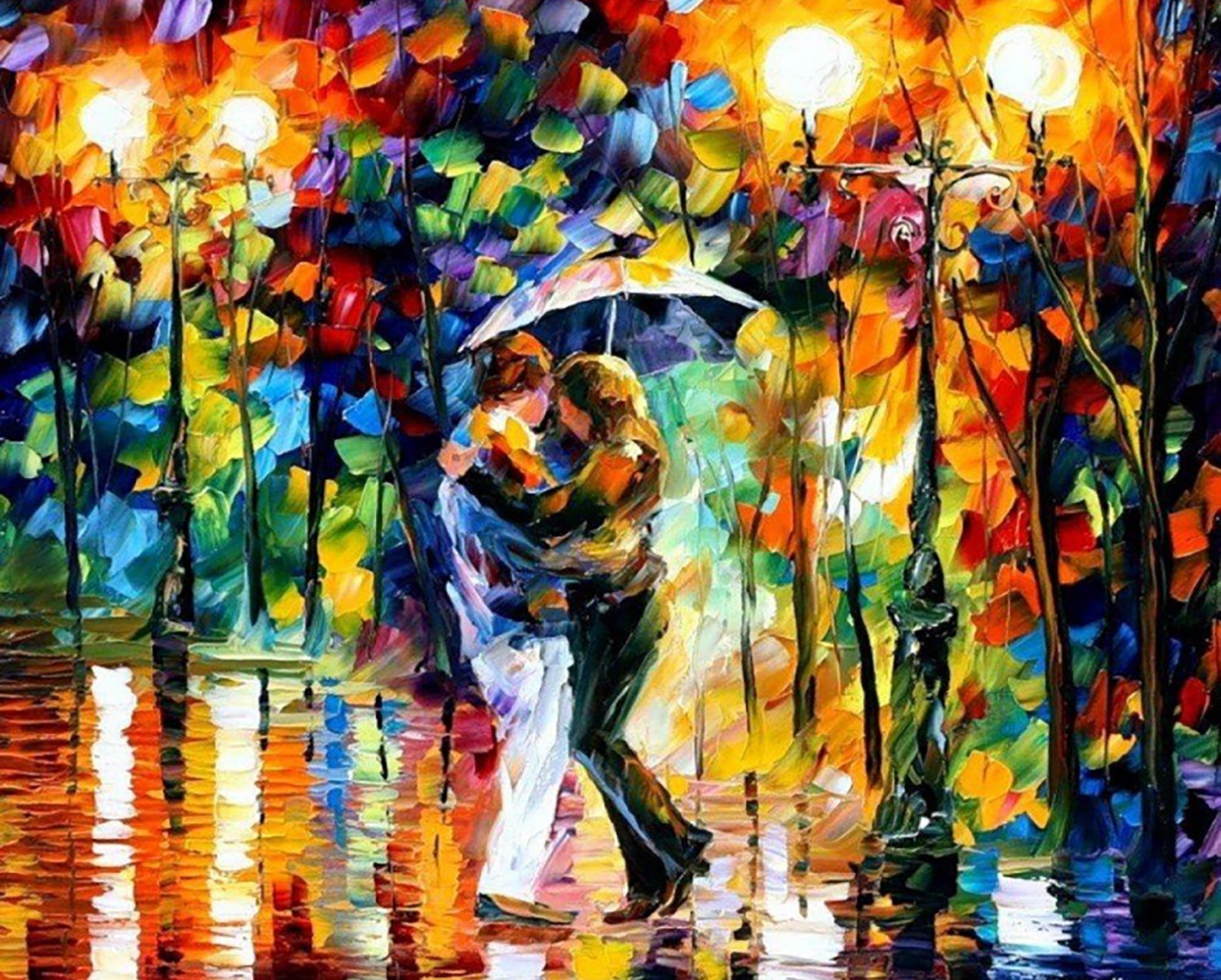 Geliefden onder een Kleurrijke Nacht Schilderen op Nummers