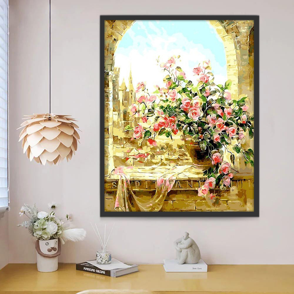 Rozen op de vensterbank van het kasteel Schilderen op Nummers
