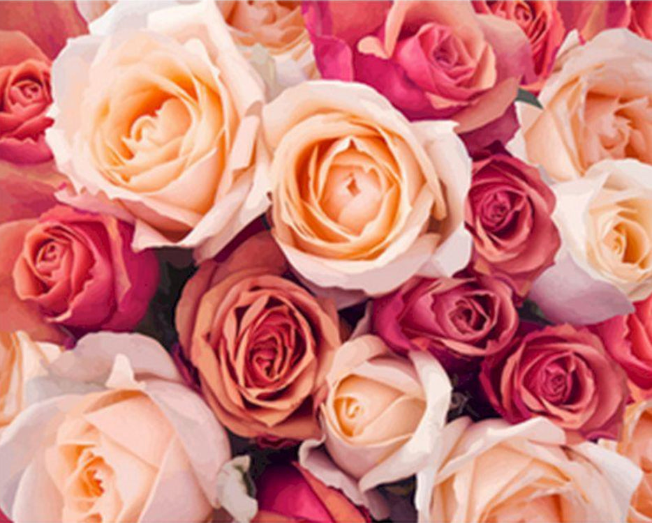 Roze en karmozijnrode rozen Schilderen op Nummers