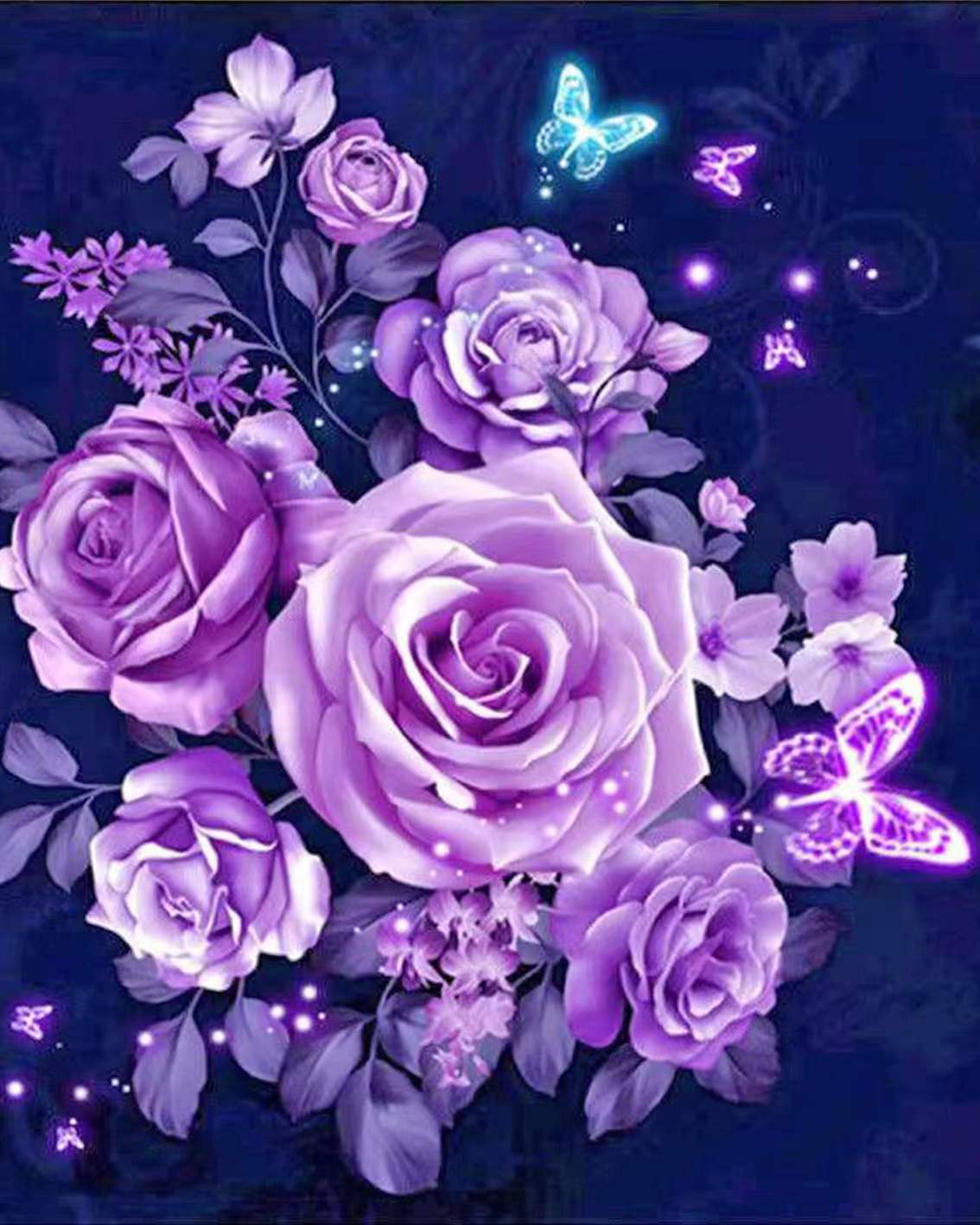 Paarse Rozen en Blauwe Vlinder Schilderen op Nummers