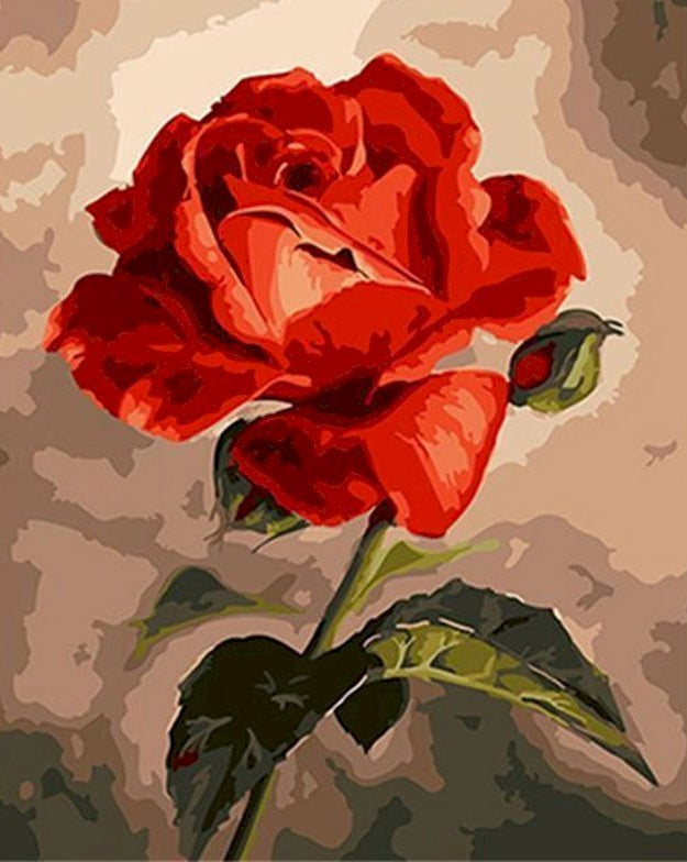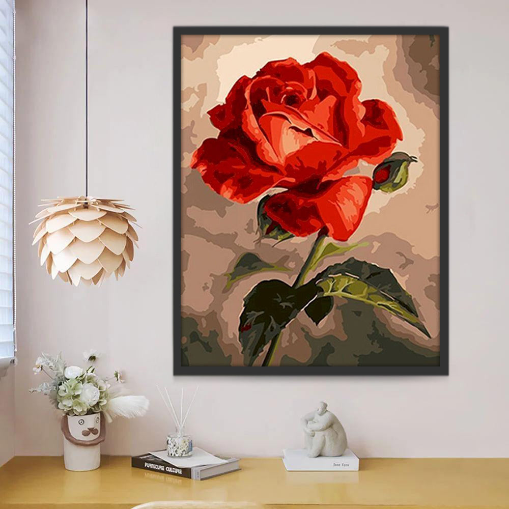 Aquarelstijl Een Rode Roos Schilderen op Nummers